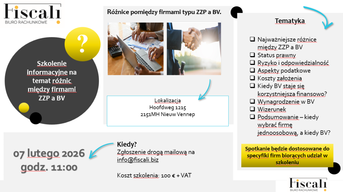 Szkolenie informacyjne na temat różnic między firmami ZZP a BV